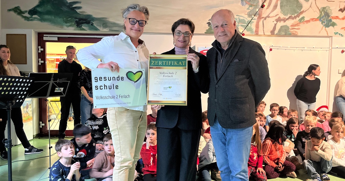 Die Volksschule 2 Ferlach wurde nun offiziell im Rahmen eines weihnachtlichen Flohmarkts in das Netzwerk der „Gesunden Schulen“ in Kärnten aufgenommen. Gesundheitslandesrätin Beate Prettner übergab die Auszeichnung – Urkunde und